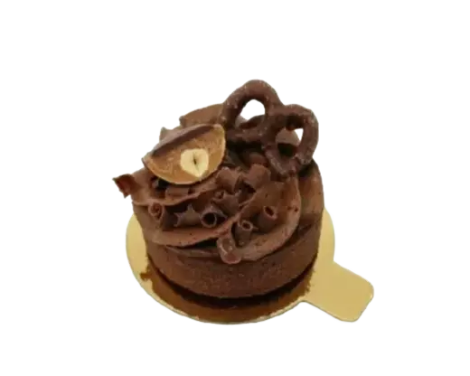 Kakaový korpus plněný pařížským krémem, zdobený čokládovým posypem, preclíkem v čokoládě a Toffifee. Váha 100 g. Alergeny 1, 3, 6, 7, 8 (lepek, vejce, sója, mléko, skořápkové plody).