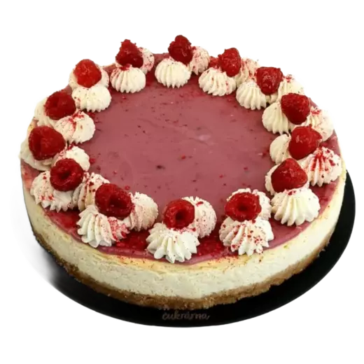 Křehký korpus z kakaových sušenek, lahodný krém ze smetany, krémového sýru a malinového pyré, zdobený čerstvým ovocem. Velikost (průměr) dortu 26 cm. Váha cca 2500 g. Alergeny 1, 3, 7 (lepek, vejce, mléko).