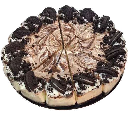 Křehký korpus z Oreo sušenek, lahodná náplň ze smetany, krémového sýru a lískooříškového krému, zdobený Oreo sušenkami. Velikost (průměr) dortu 26 cm. Váha cca 2400 g. Alergeny 1, 3, 6, 7 (lepek, vejce, sója, mléko).