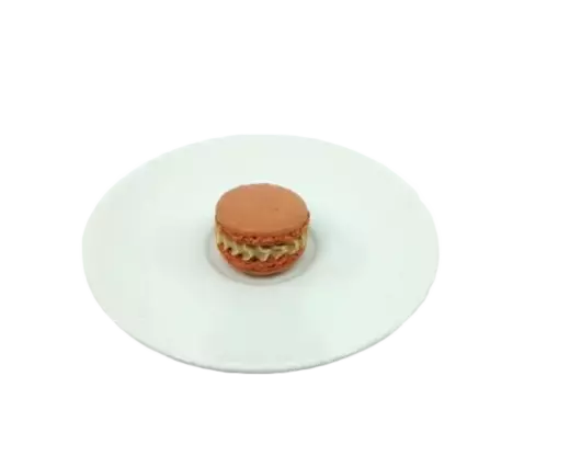 Makronka plněná pomerančovou ganáží. Váha 17 g. Alergeny 3, 7, 8 (vejce, mléko, skořápkové plody).
