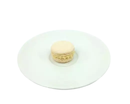 Makronka plněná vanilkovou ganáží. Váha 17 g. Alergeny 3, 7, 8 (vejce, mléko, skořápkové plody).