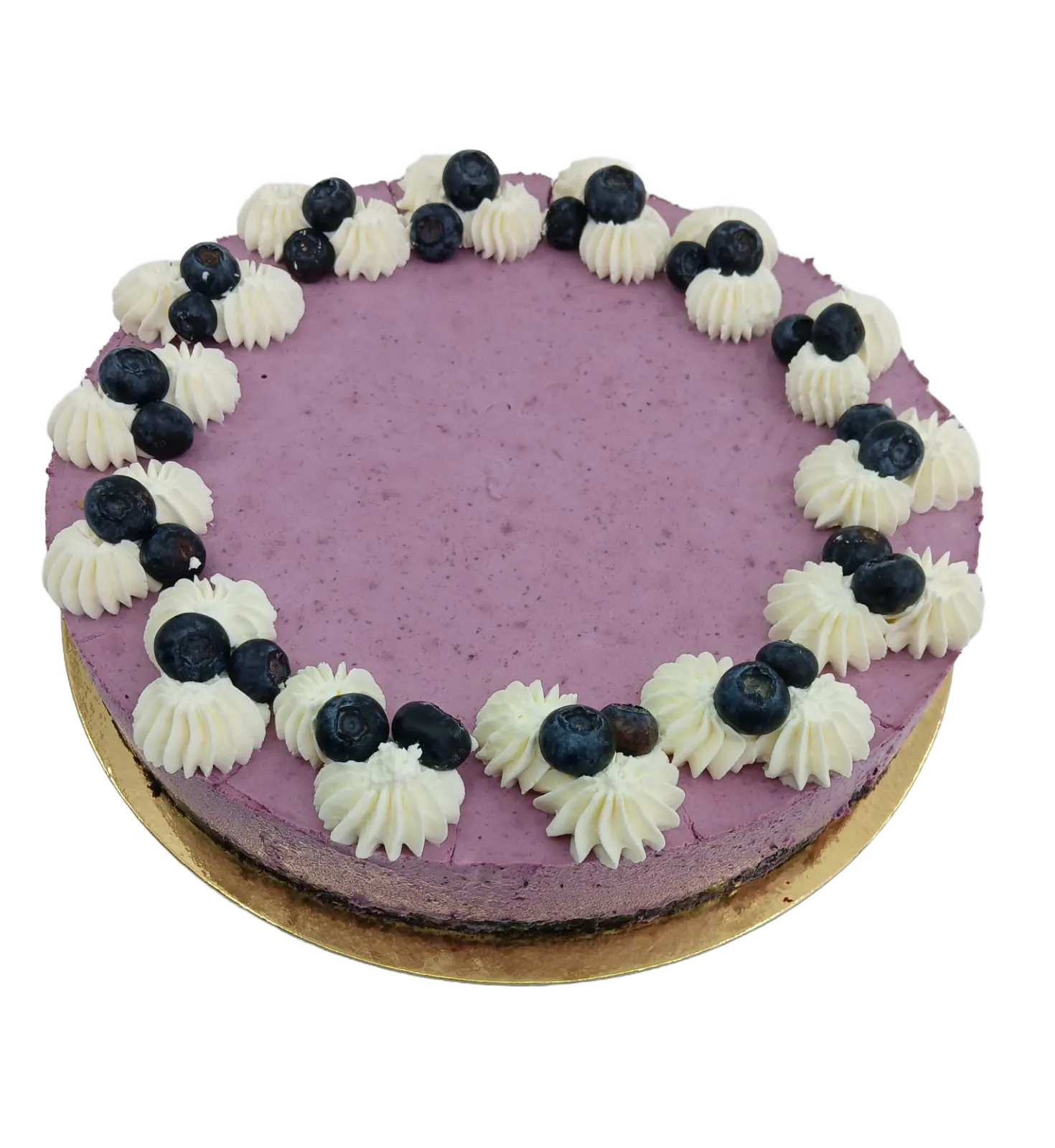 Křehký korpus z čokoládových sušenek, lahodný krém ze smetany, krémového sýru a borůvkového pyré, zdobený čerstvým ovocem. Velikost (průměr) dortu 26 cm. Váha cca 2000 g. Alergeny 1, 3, 6, 7 (lepek, vejce, sója, mléko).