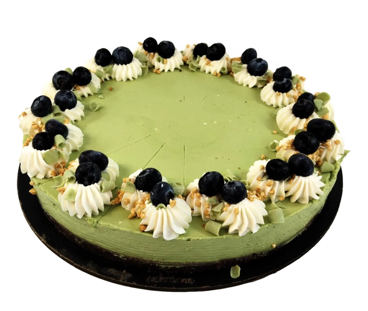 Křehký korpus z kakaových sušenek, lahodný krém ze smetany, krémového sýru a japonského zeleného čaje Matcha, zdobený čerstvým ovocem. Velikost (průměr) dortu 26 cm. Váha cca 2100 g. Alergeny 1, 3, 7 (lepek, vejce, mléko).